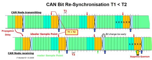 Die „Re-Synchronisation“ erfolgt durch Einfügen bzw. Unterdrücken einzelner „Time Quanten“ innerhalb einer Bit-Zeit.