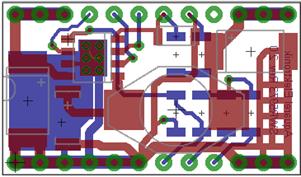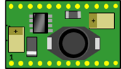 Die Ausgangsspannung des Moduls kann über externe Verbindungen auf 9.0V, 5.0V oder 3.3V eingestellt werden, dazu sind keine weiteren Komponenten erforderlich. Der maximale Ausgangsstrom beträgt nominal 2 Ampere (max. 2.3 A) und der Regler arbeitet mit einer „Puls-für-Puls“ Strombegrenzung. Tritt eine längere Überlastung auf so wird durch eine Temperatur-begrenzung eine Abschaltung durchgeführt.