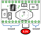 Das Modul hat Abmessungen von 32mm x 18mm und eine typische Höhe von 12mm (vom unteren Ende des Trägersockels bis zur Oberkante der Induktivität, ohne die Anschluss-Pins).