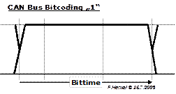 Wichtig war bei der Definition des CAN-Busses vor Allem die Übertragungssicherheit, weshalb die einfachste und mit der geringsten Taktrate mögliche Daten-Codierung gewählt wurde, das NRZ-Verfahren . „Non Return to Zero“ deshalb weil der Signalpegel innerhalb eines Bits nicht notwendigerweise in den Ruhezustand zurückkehrt. Eine logische „0“ wird also durchgehend als der „Eine“ Zustand und eine logische „1“ als der binär alternative Zustand dargestellt.
