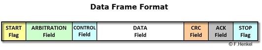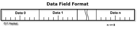 Das Daten-Feld enthält die im Control Field und dort speziell in den DLC[3..0] Bits spezifizierte Anzahl von Daten-Bytes. Bei den Datenbytes wird das weniger wertige Byte zuerst übertragen.