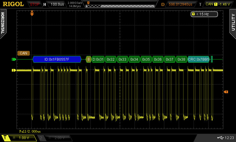 Werden mehr als 8 UART-Daten mit dem VCOM Befehl gesendet, so wird ein zweiter VCOM CAN Rahmen ausgelöst um die weiteren Datenbytes zu übertragen.