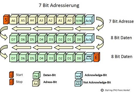 verschiedenen Protokollen auf dem I²C Bus sind innerhalb dieses Rahmens weitere “START” Konditionen möglich um beispielsweise eine Umkehrung der