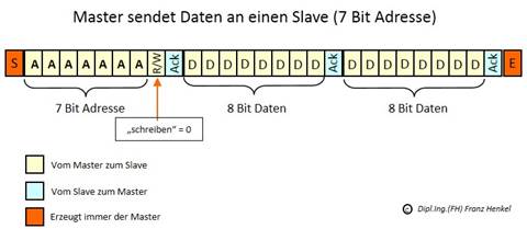 Das achte Bit im ersten Byte ("Read/Write") ist eine "0", weil Daten zum Slave geschrieben werden.