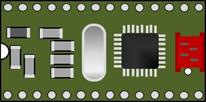 Der Pin 1 für den Sockel ist auf dem PCB mit einem quadratischen Pad gekennzeichnet und liegt dem RS232 Treiberbaustein am Nächsten. Sowohl der Modulträger als auch der Sockel auf dem Systemboard haben die von DIL-Gehäusen bekannte halbkeisförmige Aussparung zur Kennzeichnung von Pin 1.