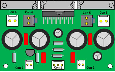 Ein 3-pin PSK-Verbinder am Rand der Leiterplatte stellt die Eingänge für die beiden Verstärkerkanäle zur Verfügung. Die beiden Eingänge haben einen gemeinsamen Masseanschluß.