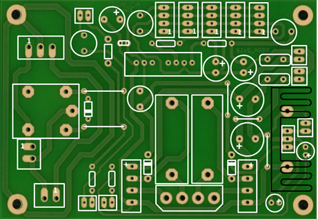 Das Layout ist auf einer einseitigen Leiterplatte implementiert.
