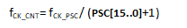 | TIM1_PSCRH | PSC[15] | PSC[14] | PSC[13] | PSC[12] | PSC[11] | PSC[10] | PSC[9] | PSC[8] | |